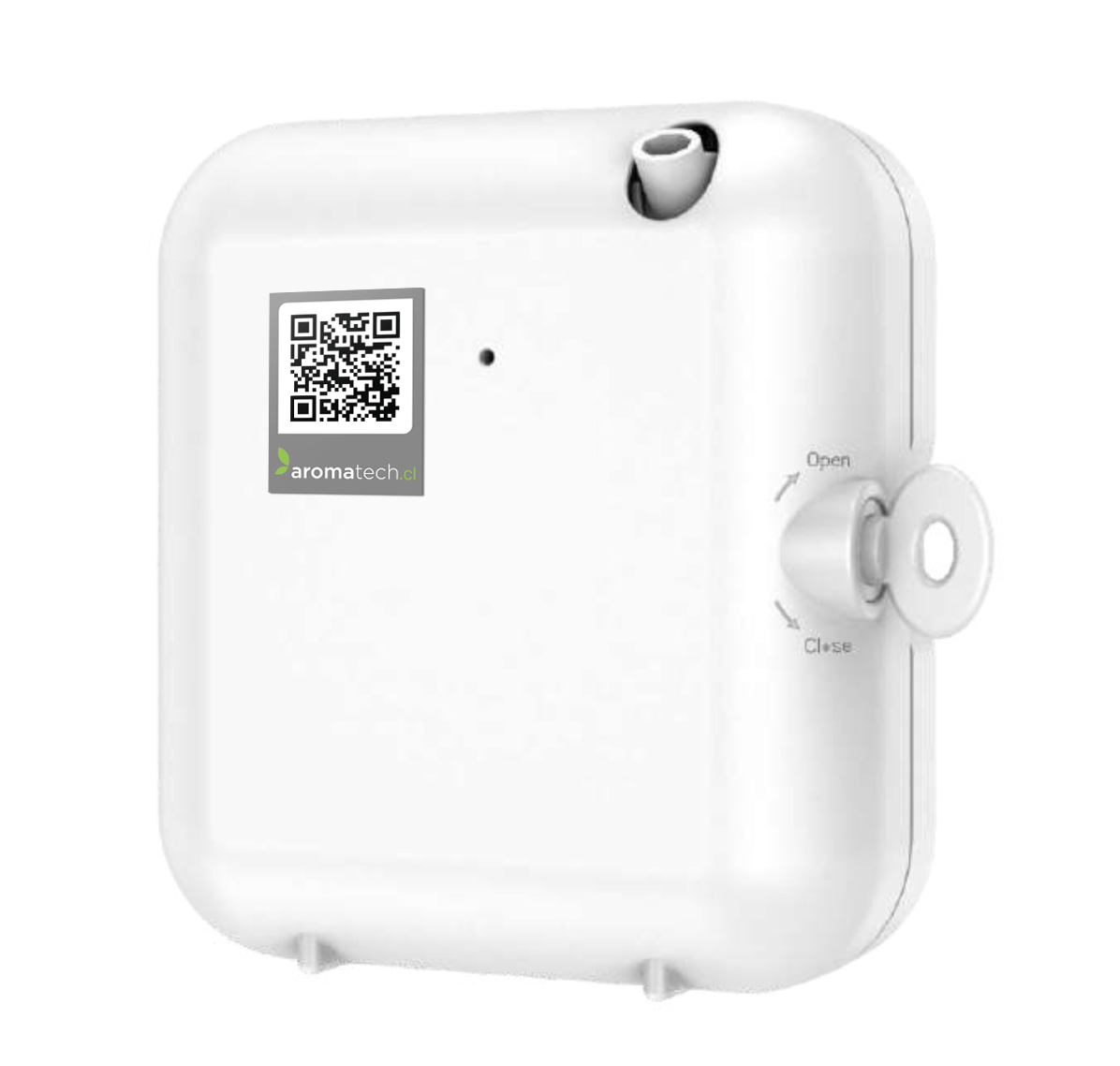 Aromatiza aprox. 30-60m2, almacena 100ml, tiene conexión bluetooth, mide 14x15x6cm y funciona conectado a la corriente (1.5w), o pila D.